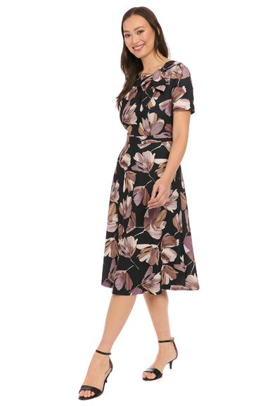Bold and beautiful for fall, this gorgeous dress is a lovely blend of fall colours and feminine flair! Featuring a stunning floral print and flatte...