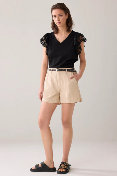 Need a little inspiration to spice up your summer wardrobe? Featuring a classic v-neck and gorgeous lace butterfly sleeves, this trendy top is the ...