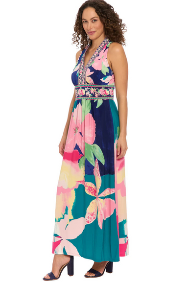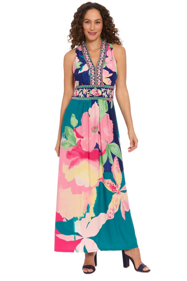A stunning gown for any formal occasion, including weddings! Featuring a classic v-neck and tulip print, this gorgeous gown highlights a pleated sk...
