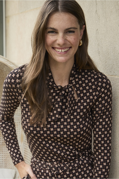 Need a little inspiration to spice up your fall wardrobe? Featuring a unique tie neck and geometric-inspired print, this classic top is the perfect...