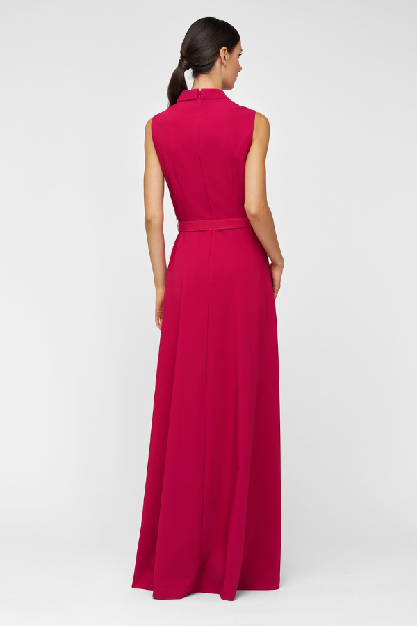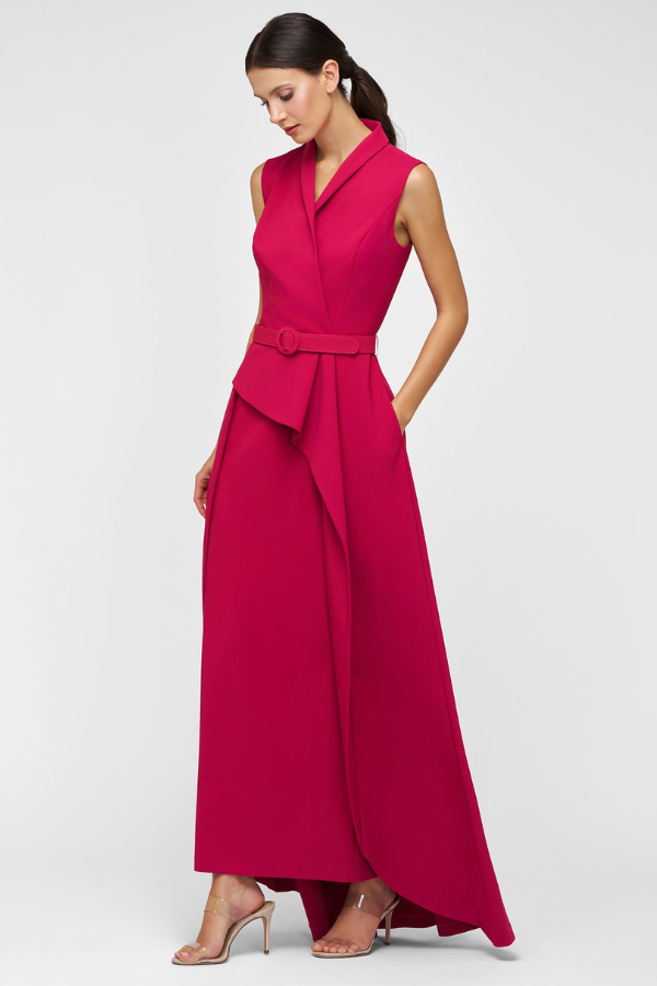 A stunning gown for any formal occasion, including weddings! Featuring a notched shawl collar and belted waist, this gorgeous gown highlights