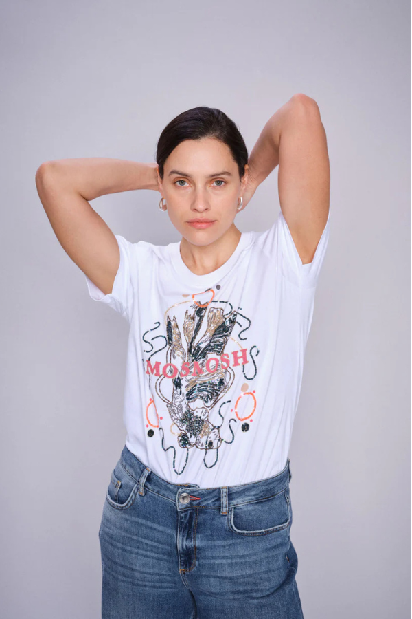 Need a little inspiration to spice up your denim and trousers? Featuring a graphic print and regular fit, this stunning tee is the perfect go-to piece for style and versatility. The soft cotton fabric will keep you at just the right temperature, and the style is perfect for layering under all your blazers. Even better? The feminine vibe makes this beauty easy to dress up with trousers and heels. Your inner fashionista is going to love this little tee!