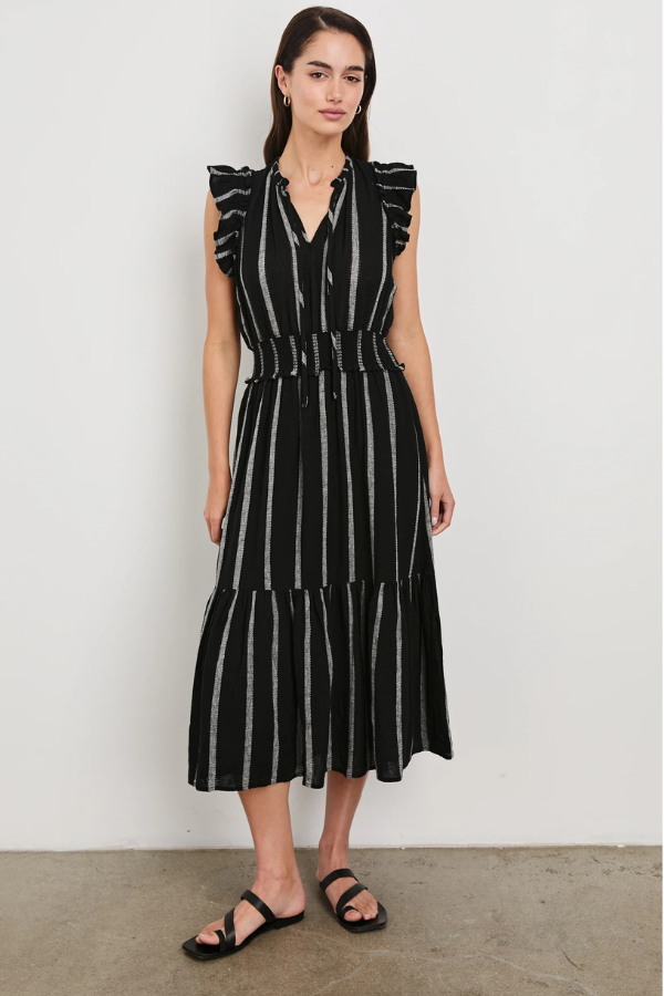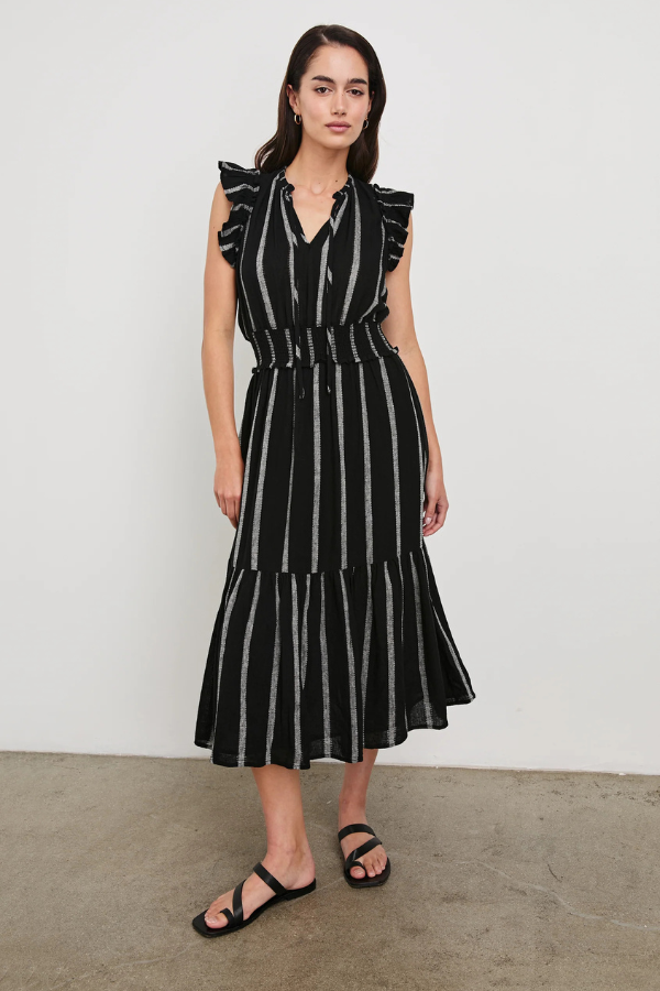 Featuring a soft linen blend and ruffled feather sleeves, you'll love the feminine appeal of this striped shirt dress! Pair with sandals for a dinner date, or throw on your heels and jewellery for the office. Staying cool and fashionable for the warm-weather season is an absolute must!